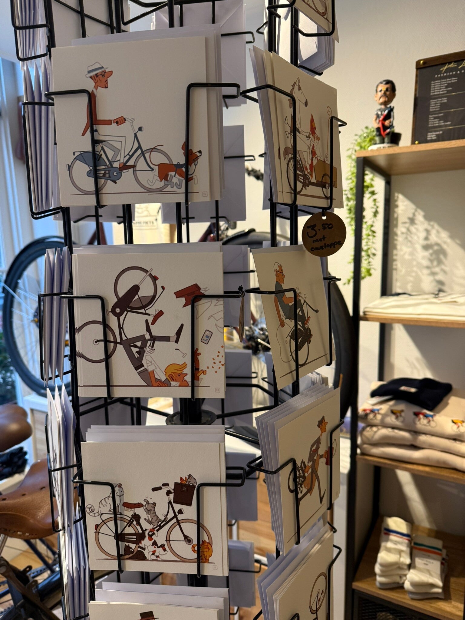 Laat je verrassen door de unieke kaartjes van Nicolas Journoud, een Franse kunstenaar die met humor en scherpe observatie het gedrag van Nederlanders op de fiets illustreert. Deze charmante kaartjes zijn leuk om te sturen als verrassing of als aanvullende woorden bij een groter geschenk. Wij hopen dat onze selectie je inspireert en je enthousiast maakt om onze winkel in Dordrecht te bezoeken voor de volledige beleving en nog veel meer moois.